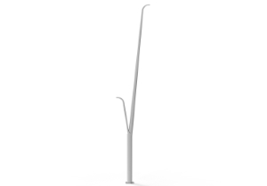 Poste cónico circular de acero calibre 11, de 6 a 12 metros de altura. Brazo en tubular de Ø2” y adorno en base de lámina calibre 20, a corte láser.